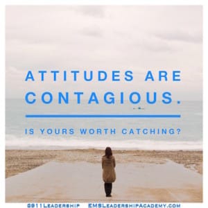 A lot of EMS leaders that we have worked with complain about the attitudes of their staff and/or members. These leaders recognize that positive attitudes are critical to the organization running effectively yet these leaders fail to even consider their own attitudes are the cause or at least a major influence on the attitudes of their subordinates. Whatever the pervasive attitude of the leaders of an organization is, it has a ripple effect on the rest of the organization because attitudes are contagious. Want a more positive organization, then you need to work on your attitude first and foremost!