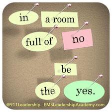 - Consider your audience. Many people are an automatic NO to new ideas; it’s just their default approach to life, avoiding change or seeing risk as dangerous. (Here’s a great resource for combating negative bias, especially in EMS.)